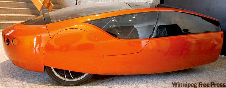 Winnipeg inventors roll out oddly shaped, low-powered car of the future