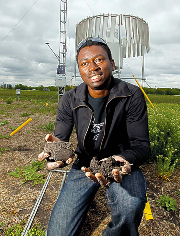 Checking soil in Manitoba winters isn’t all that easy, but that’s when Ojo does his lab work and analysis.