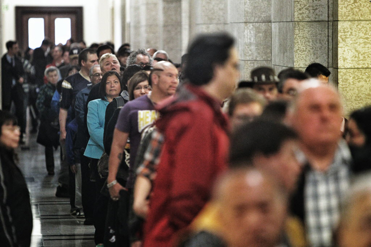 Mike Deal / Winnipeg Free Press Mourners line up to pay their final respects.