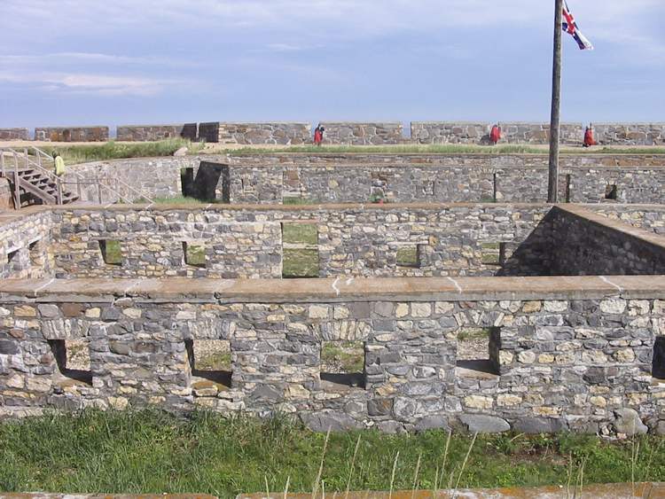 The walls were unbelievably thick, 11 metres thick in some places. The 40 cannon were mounted on carriages along the parapet. The width of the walls provided room for cannon recoil.