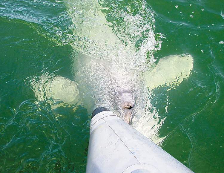 It stayed right behind the boat. It looked spectral beneath the clear waters off Churchill, in the estuary where the Churchill River empties into briny Hudson Bay. What would it do next?