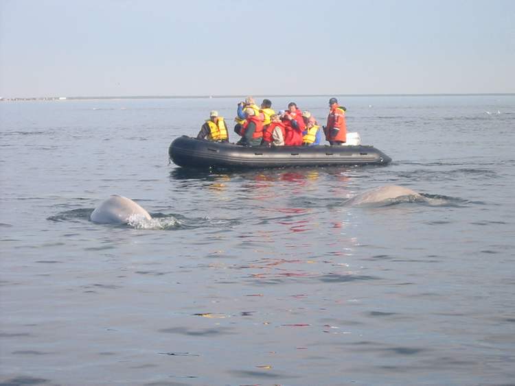 In summer, you can see the white whales from every vantage point. To the newly arrived tourist, it looks like white caps out in the harbour until someone tells you those are whales. The belugas, often several in a row, go diving along the surface of the water in chase of capelin, a small smelt fish.