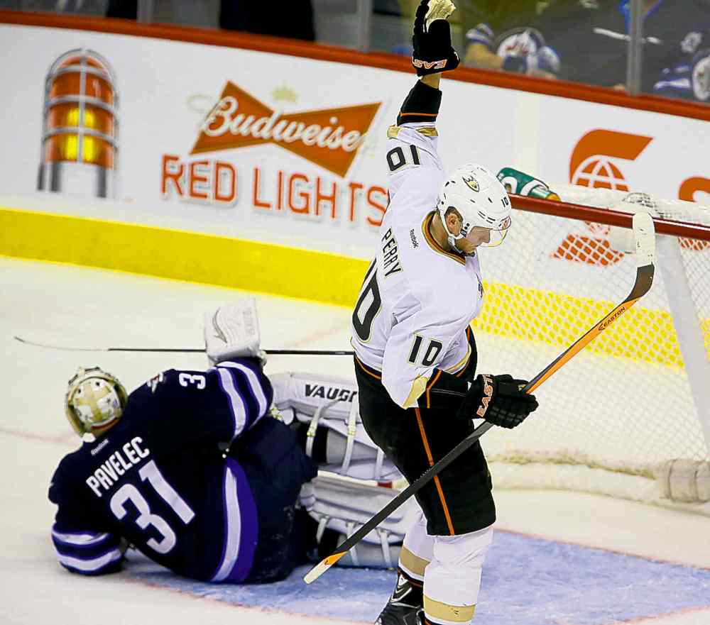 Outshot for the third straight game, the Jets were guilty of too many errors to document in this space — or this section, for that matter — but the most obvious was Zach Bogosian’s giveaway with just over five minutes left, when he blew a tire behind the Jets’ net and had his attempted pass dribble to a wide-open Corey Perry, who buried the game-winner behind Pavelec.
