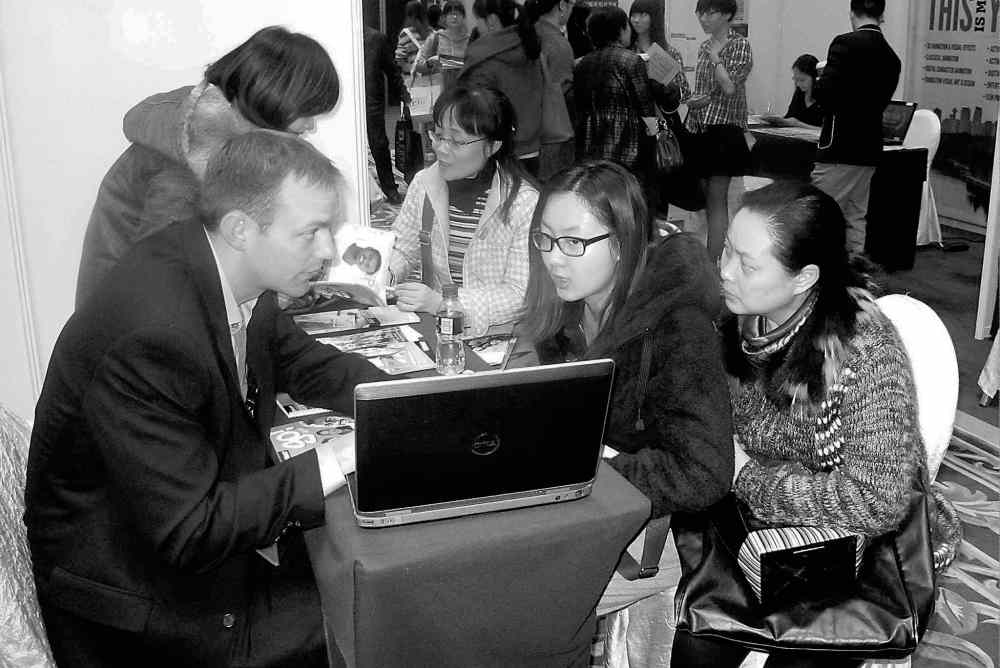We were in a great exhibition hall at the impressive Shangri-la Hotel, built on park-like grounds at the forks of the Jin and Funan rivers in downtown Chengdu. The hall was filled with neat rows of booths, like streets along which thousands of students, many with their parents, window-shopped for an “international” school where they might study in English.