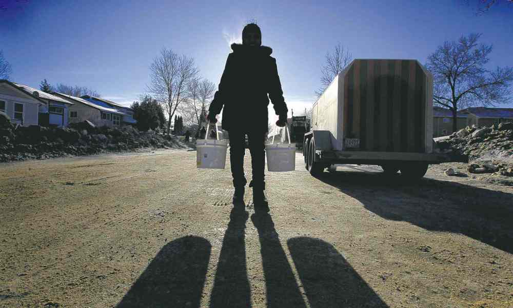 People lined up Wednesday to get water, waiting in the bitter cold for their turn to fill up buckets from a tank provided by the city and parked in the middle of Jefferson Avenue, which was closed to traffic.