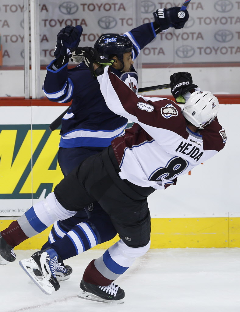 Byfuglien, in bang-bang fashion late in Sunday’s second period, sent a pair of Colorado Avalanche (Tyson Barrie and John Mitchell) flying, bringing the MTS Centre crowd out of its chairs.