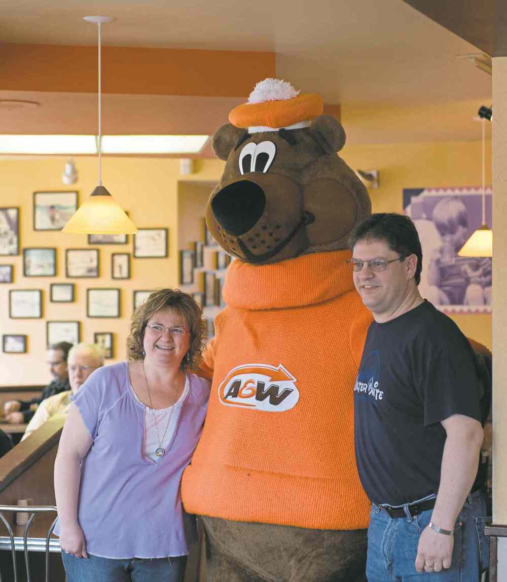 Brenda and Ian McCarthy with the Root Bear Saturday at the A&W where they met.