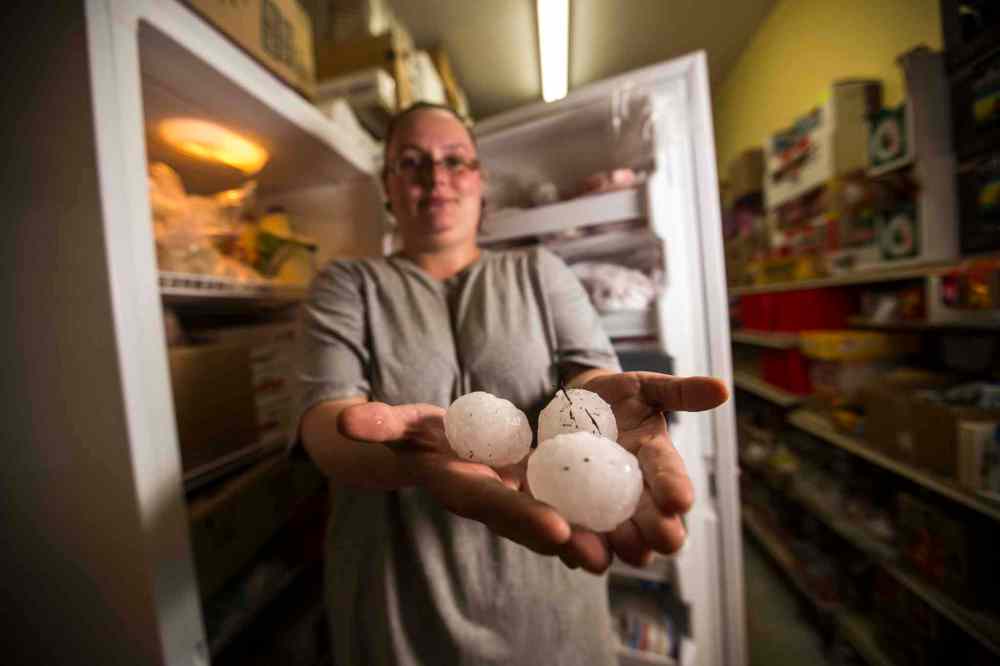 “We’ve received no word of any touchdowns in the area,” the spokesman said. “We do have reports of heavy damage in the area and up to softball-sized hail.”