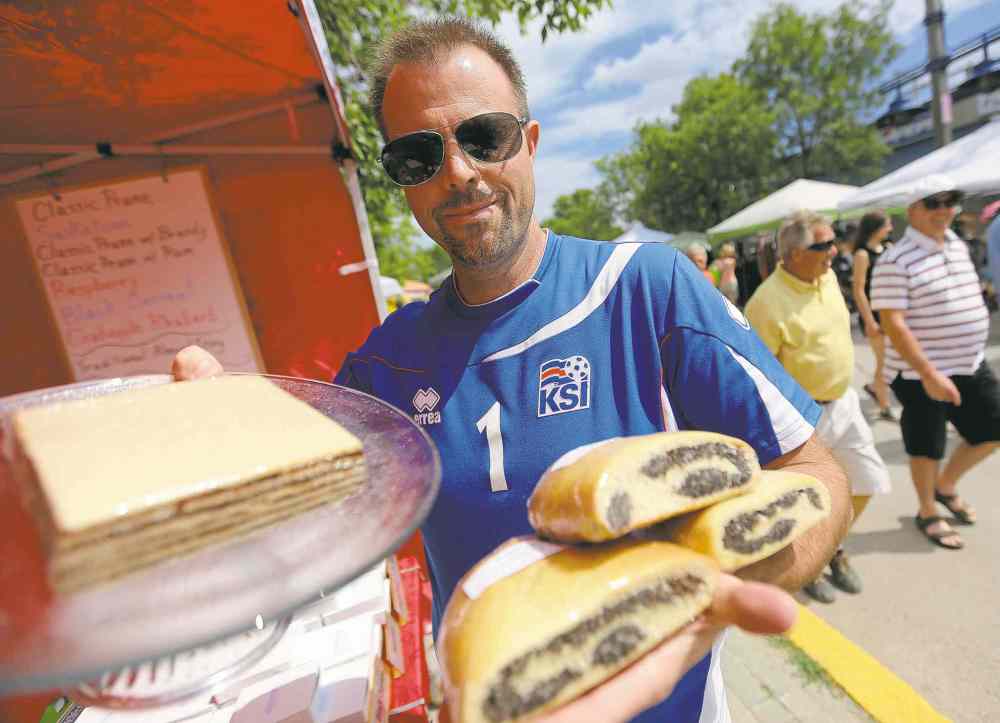 Sales at Kyle’s Icelandic Vinarterta booth could not have been hotter, at the always-interesting street fair of Islendingadagurinn, a.k.a. Gimli’s Icelandic Festival.