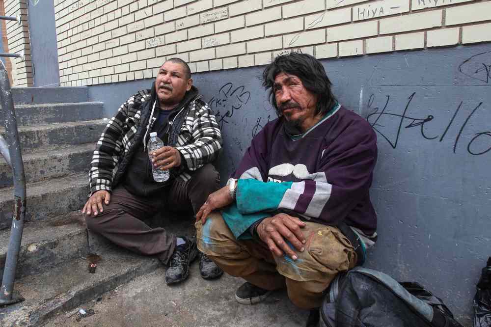 In a back alley close to Main Street, cousins Doug Ballantyne (left) and Peter Blackhawk take care of each other as part of their life on the street.