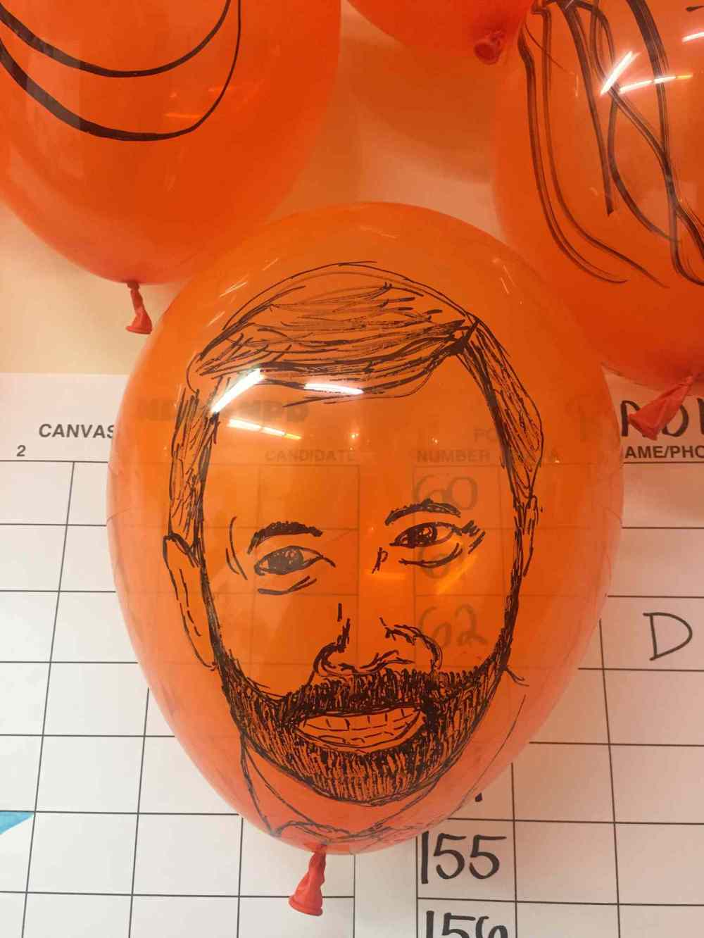 Erin Selby, NDP candidate for Saint Boniface-Saint Vital, campaign office on St. Mary’s Road: Walking into the former NDP MLA’s office is like a throwback to the provincial leadership race last year. Former fellow cabinet minister Jennifer Howard was at the office with her family, along with a host of other volunteers seen during Theresa Oswald’s failed leadership attempt. Alissa Brandt, the former director of the premier’s secretariat, is managing Selby’s campaign. While not as well-fed as Duguid’s campaign, they know how to have fun — orange balloons with the faces of volunteers drawn on them line the walls of the office; even NDP Leader Tom Mulcair has his own balloon.