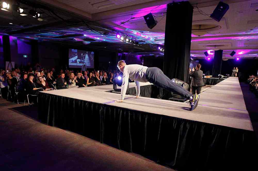 Happily, for the second walk — which features activewear from New Balance — Virgin Radio’s Ace Burpee and TSN’s Sara Orlesky are there to provide colour commentary, and the whole room collectively loosens up. The players are more at ease. Couples are walking together and cheese-balling it up.