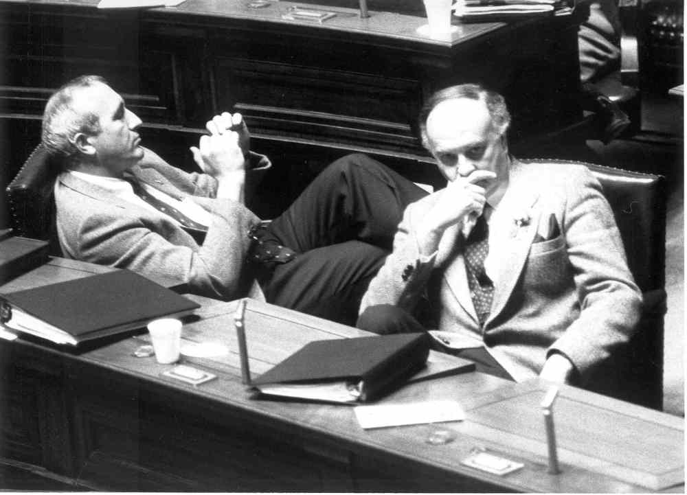 The NDP was re-elected under Pawley in 1986 with a razor-thin majority. In a 1988 budget vote, NDP MLA Jim Walding voted with the Tories to bring down Pawley’s government. Pawley resigned and was replaced as leader by Gary Doer. In his first bid to become premier, Doer took on PC Leader Gary Filmon in the 1988 election. Filmon won a minority government.