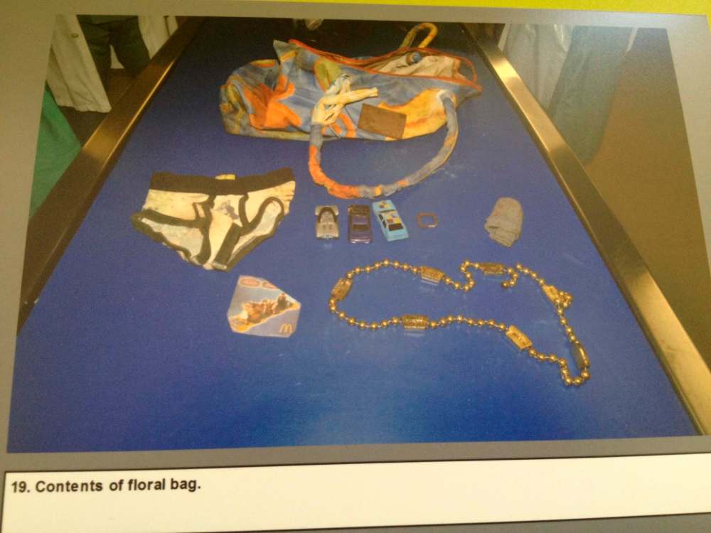 His body was found stuffed inside a plastic storage container that also included an unusual list of other items — including three small toy cars, Scooby-Doo underwear, a perfume sample, a Pepto-Bismol bottle filled with coins, a plastic beaded necklace and a McDonald’s Happy Meal coupon. There were also personal papers belonging to Giesbrecht, including payroll stubs from 2004 and a St. John Ambulance training certificate that expired in 2007.