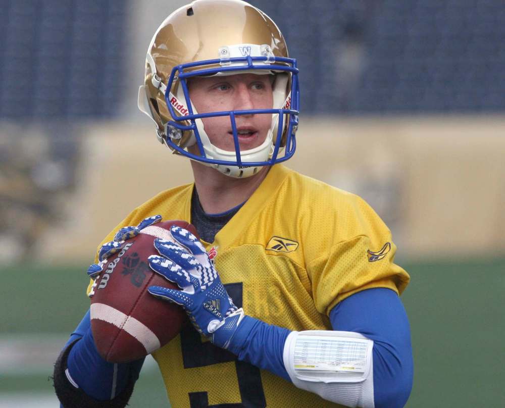 Drew Willy’s first pass at Winnipeg Blue Bombers practice Thursday was tipped at the line, intercepted by cornerback Matt Bucknor and returned for a touchdown.