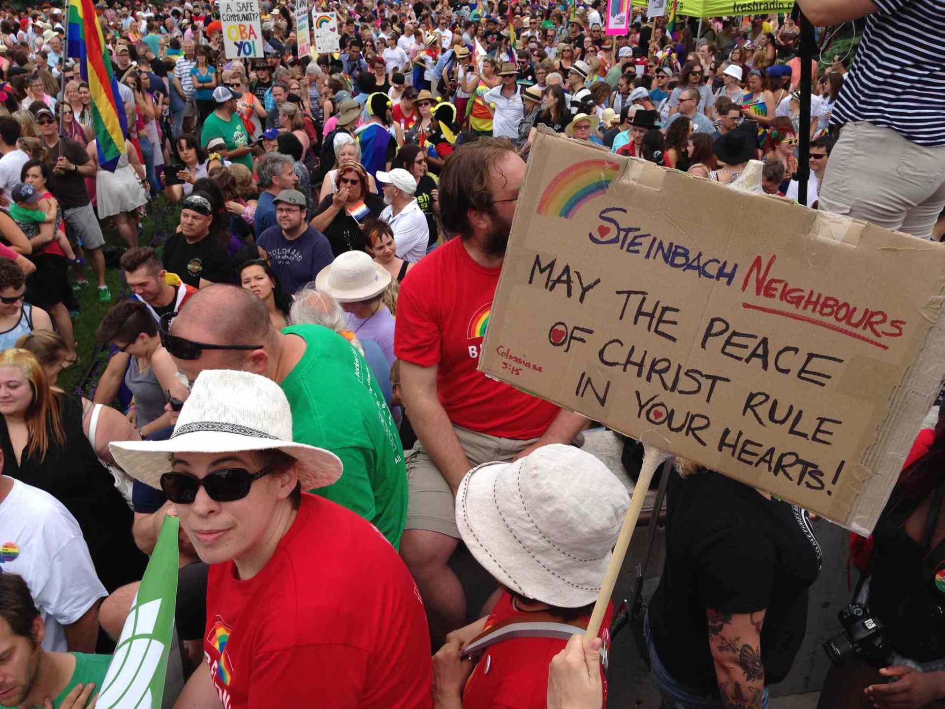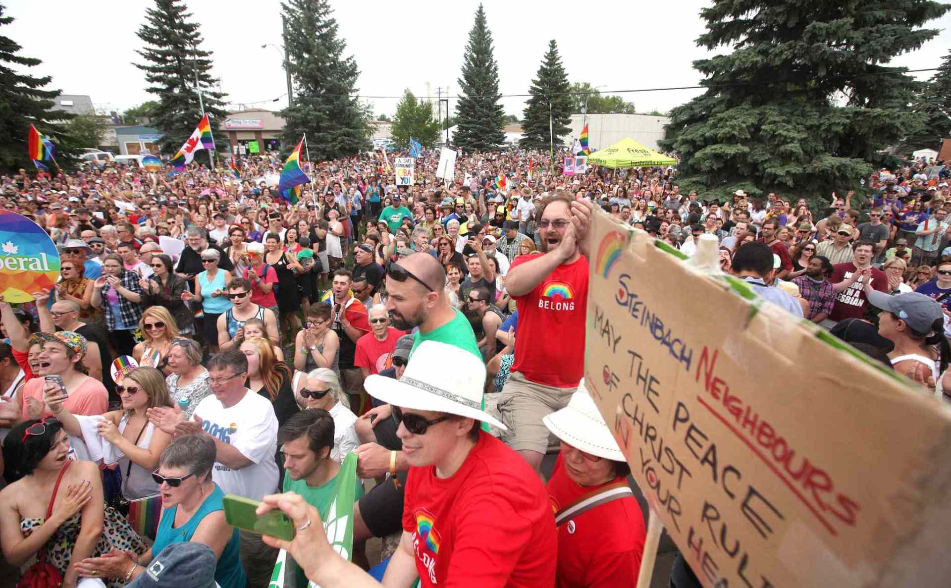 Many said the sheer size of the event served to give the LGBTTQ* community its biggest show of solidarity in the history of Steinbach, a Mennonite community founded in 1874 by a devout Christian sect of farmers persecuted throughout their history in Europe.