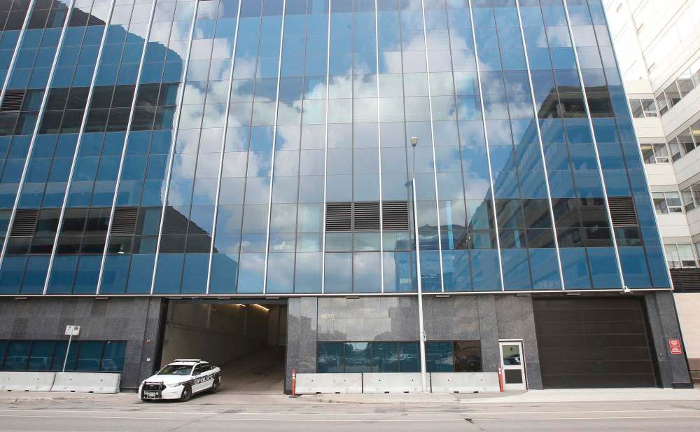 The tank, which a civic spokeswoman said is estimated to be 3.1 metres in diameter and 6.3 metres in length, is buried near the building’s front entrance, underneath the covered driveway at the southwest corner of Graham Avenue and Garry Street.