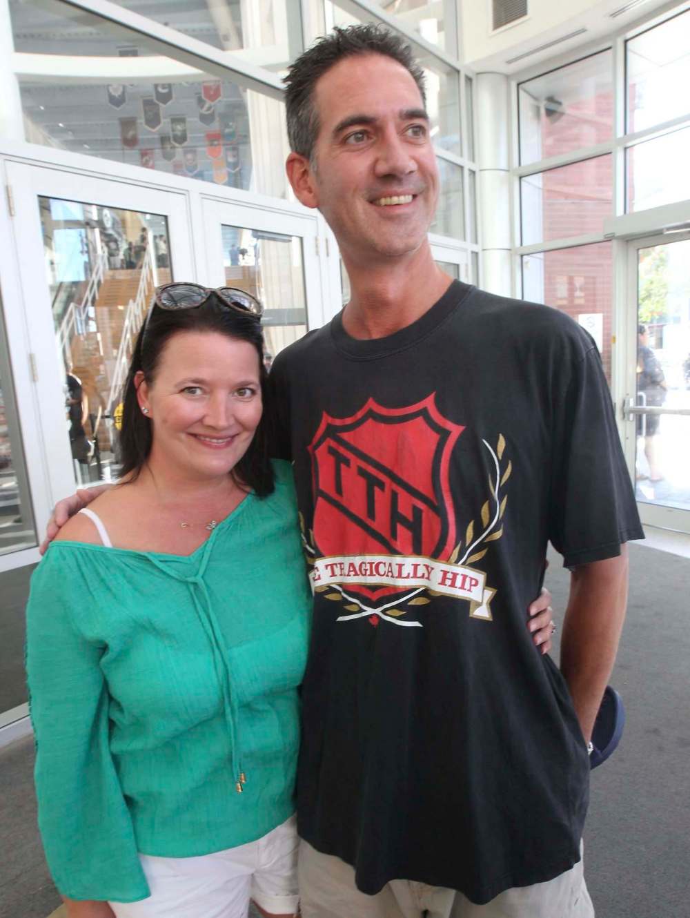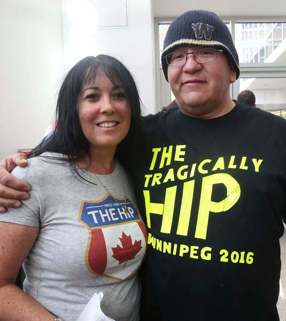 Fans Rodd Bruntjen and wife Nedira LeBlanc from Minnestota inside MTS Centre attending the Tragically Hip concert Friday night- Aug 05, 2016 -(See Randy Turner’s Tragically Hip story)