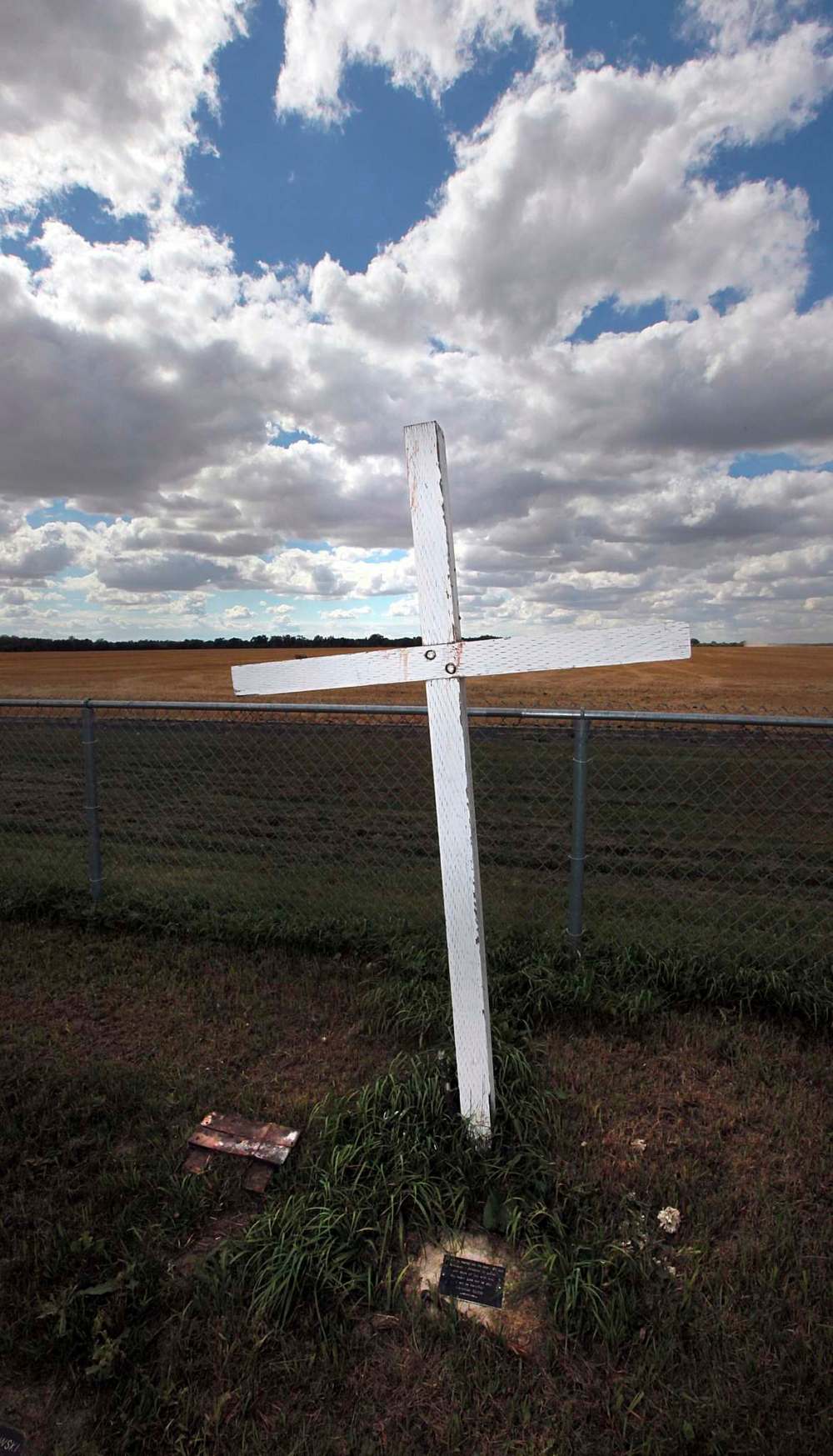 A chain link fence marked the cemetery. There is no signage. There is only a large wooden cross made out of four-by-four lumber, flaking its white paint. Corrections staff cut the grass regularly.