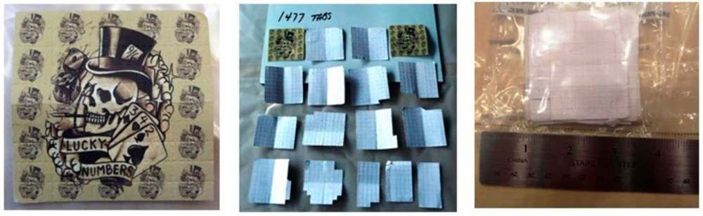 POLICE HANDOUT Winnipeg police released these photographs of the blotter sheets that contained the drug carfentanil.