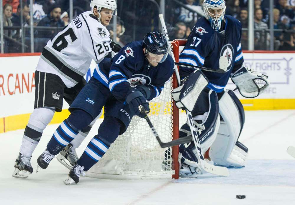 Although he faced only six shots in each of the first two periods, Hellebuyck was steady as the Jets killed off five minor penalties. His best stop came a 3:43 of the third period when he robbed Jeff Carter, sent in all alone, with a superb glove save. It was one of 17 L.A. shots in the period.