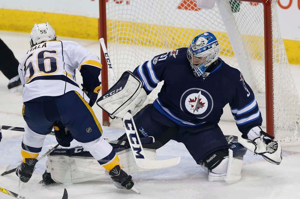 Rookie left-winger Kyle Connor, returning to the Jets lineup for the first time since being demoted to the AHL’s Manitoba Moose on Nov. 29, tied the game at 10:47 of the third period when he took Adam Lowry’s nifty setup to snap the puck past Preds goaltender Pekka Rinne. It was Connor’s second goal in 20 NHL starts.