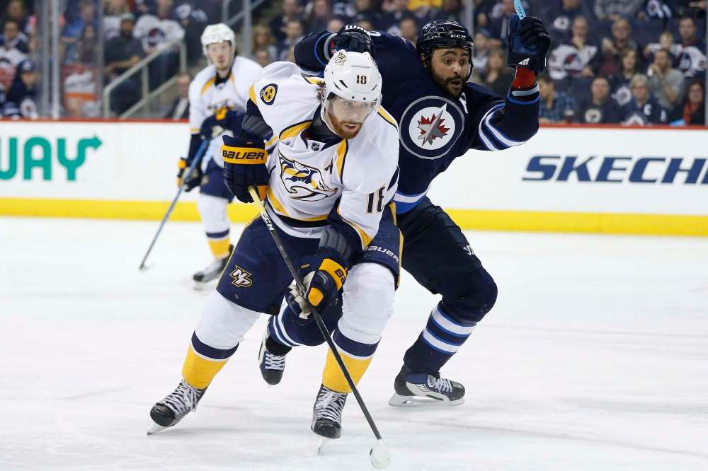 Midway through the second period, Preds defenceman Ryan Ellis intercepted Bryan Little’s cross-ice pass and tucked the puck past Jets goaltender Connor Hellebuyck on a short-handed breakaway to give Nashville a 1-0 lead.