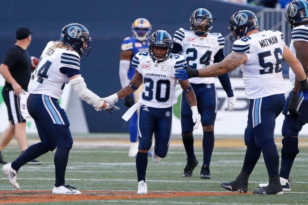 Sure enough, Bombers’ Ryan Lankford ran the opening kick-off back 105 yards for a TD, earning Kuldys a $25,000 home theatre package from Visons Electronics. In the second quarter, the Argos’ Martese Jackson returned a kickoff 109 yards for another TD — only to have the play nullified by an illegal block penalty called on the play.