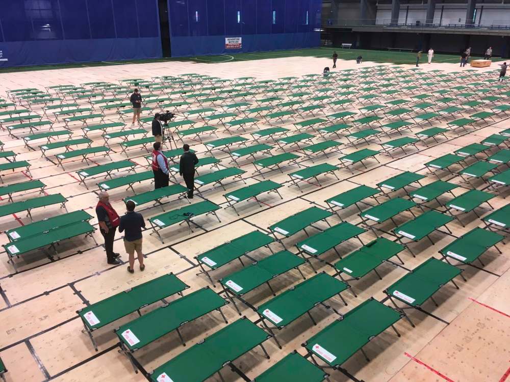 Volunteers, who’ve been working around the clock had set up close to 300 cots inside the facility by 9 a.m. The building can safely accommodate more than 900 people.