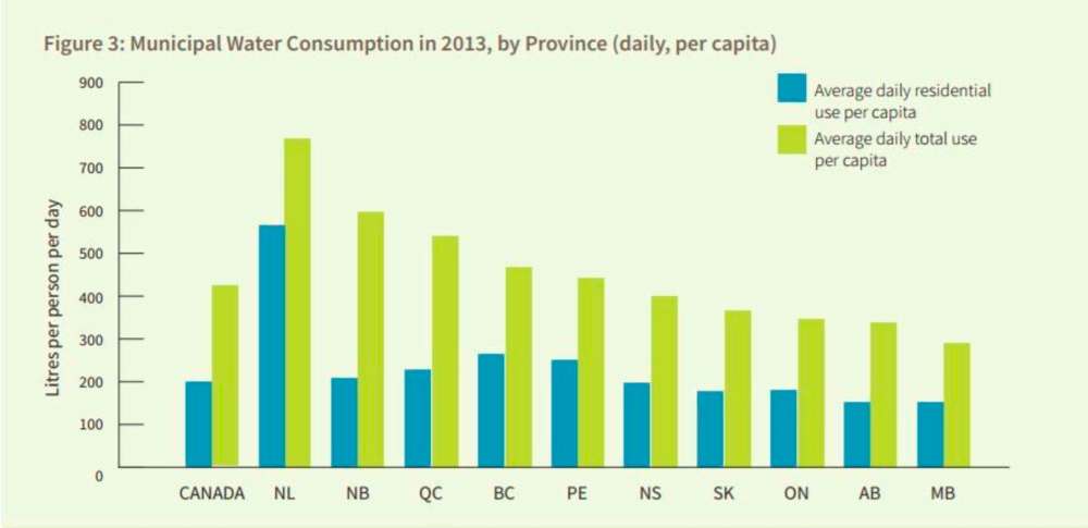 CANADA'S ECOFISCAL COMMISION / STATISTICS CANADA Tge average daily residential and total per capita consumption of water, by province.