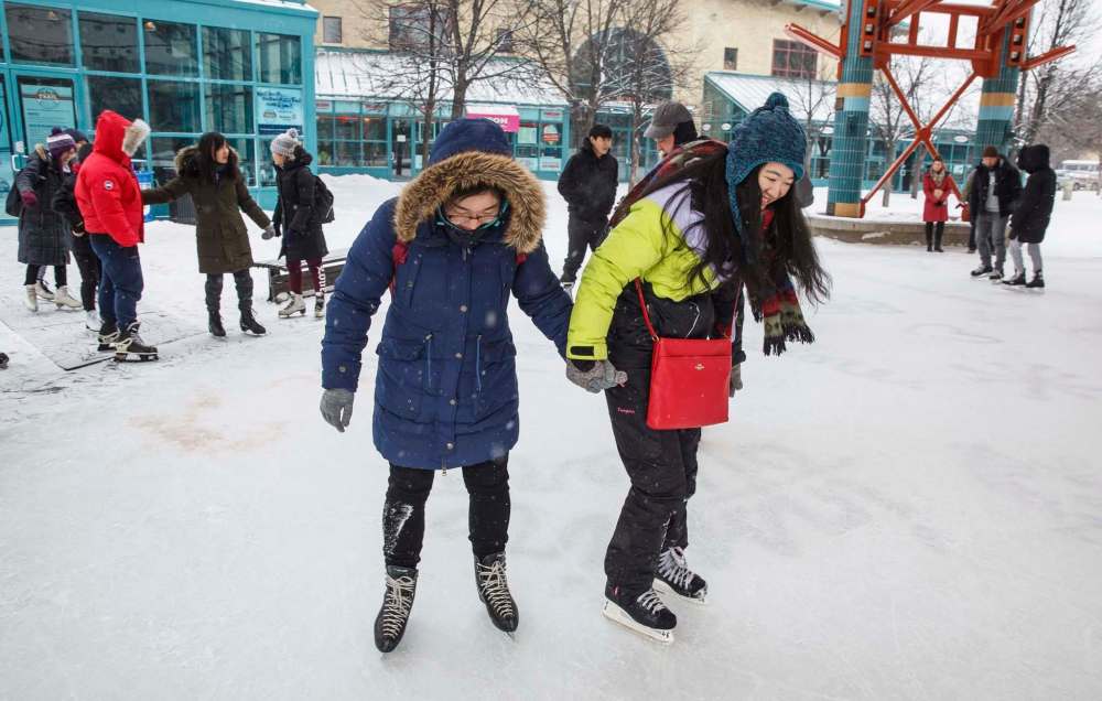 MIKE DEAL / WINNIPEG FREE PRESS The Language Training Centre at RRC brought around 30 students who had never skated before to The Forks to give them that essential Canadian experience.