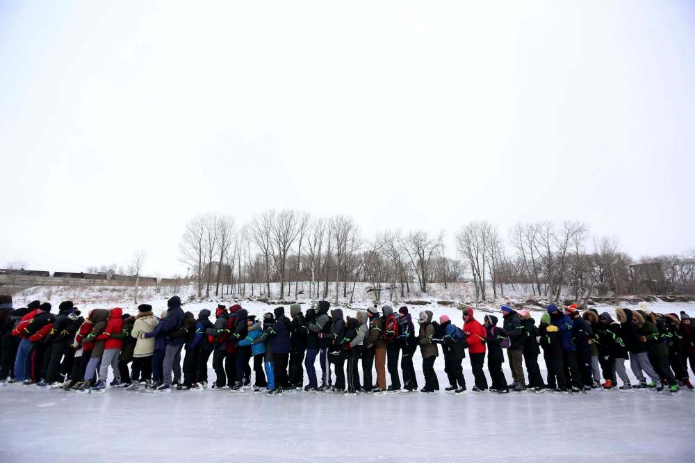 Skaters turned up at The Forks for a Guinness World Record attempt for the longest line of ice skaters, Sunday, February 4, 2018.