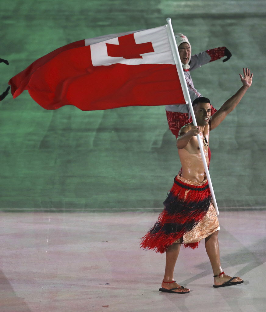 That Tonga guy did the same thing in Rio. More impressive trick this time though. He must have been freezing.