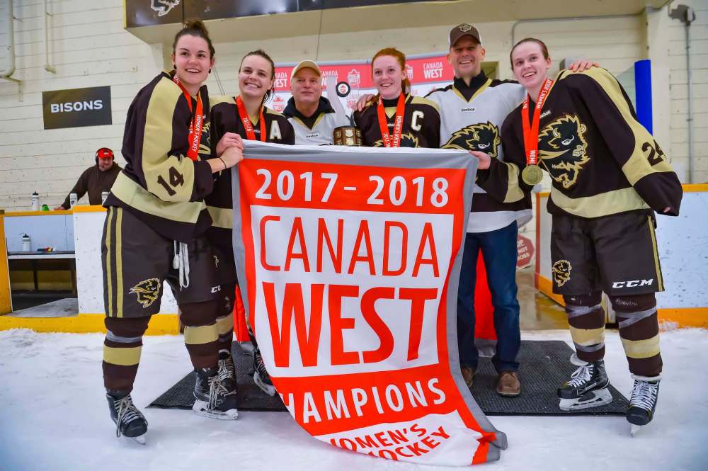 The University of Manitoba Bisons women’s hockey team is the 2017-18 Canada West champion after sweeping the University of Saskatchewan Huskies in the conference best-of-three series over the weekend.