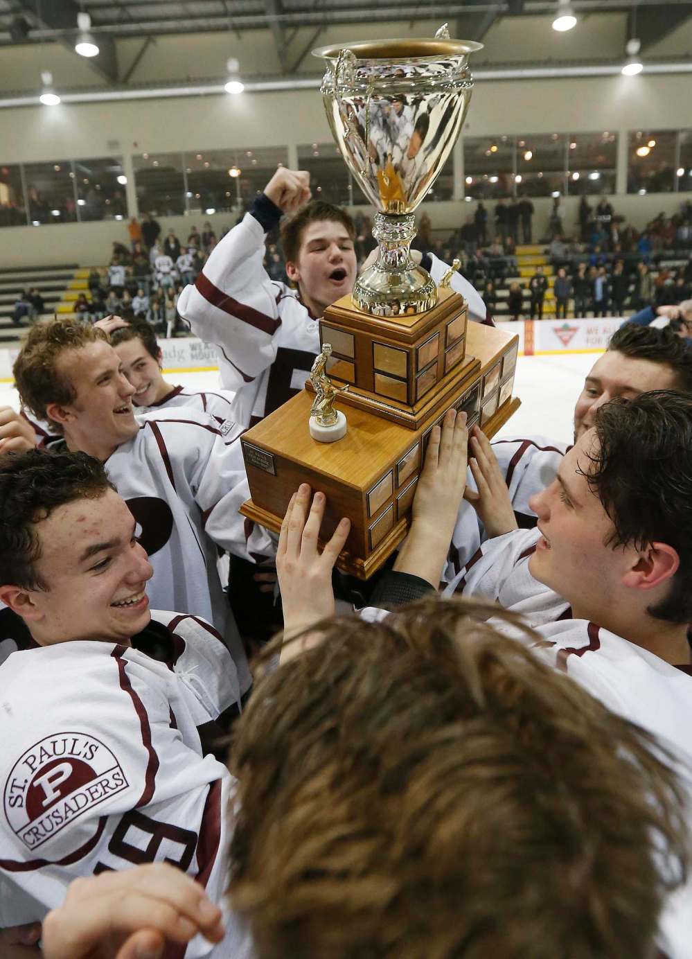 The St. Paul’s Crusaders reached into their large array of offensive weaponry and came away with their third consecutive Milk AAAA Provincial High School Boys Hockey Championship on Monday night.