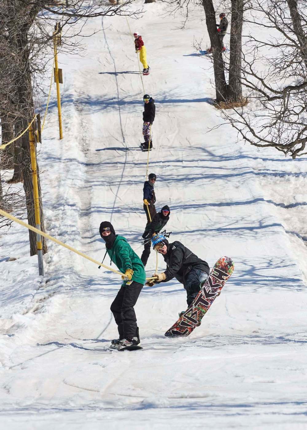 STONY MOUNTAIN — Dozens of snowboarders and skiers strapped on their equipment to go on one last shred and rip as the local ski hill opened for its final day, Sunday.