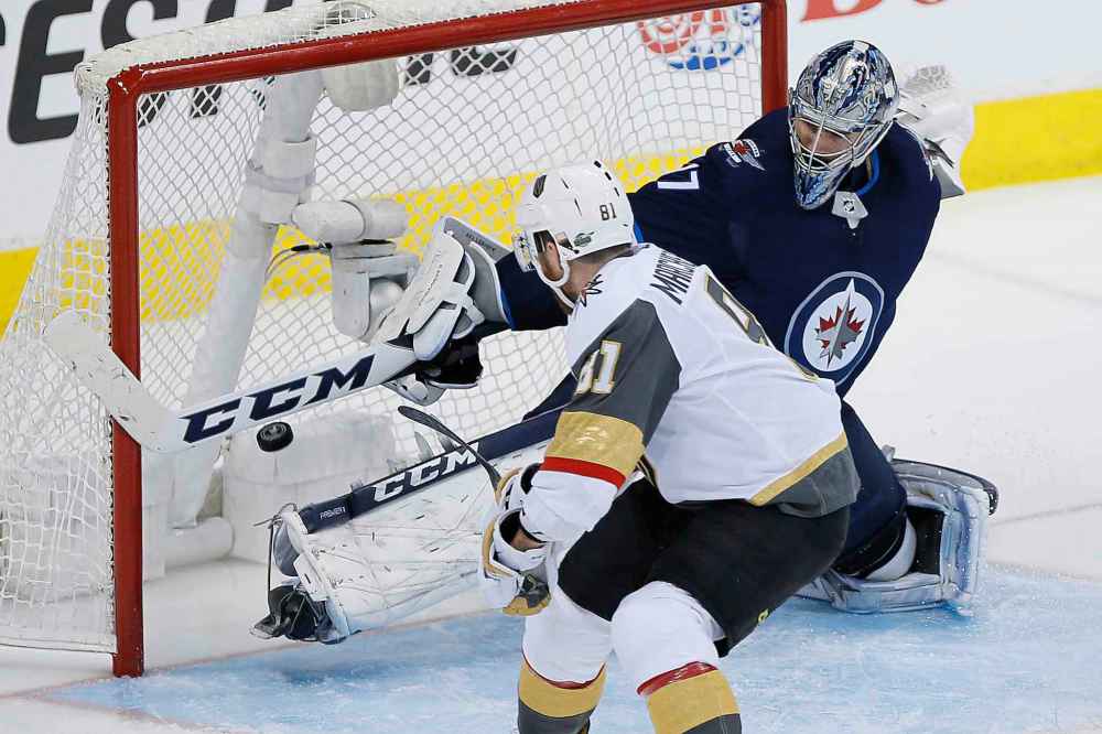 A power-play goal by Kyle Connor midway through the third period cut the Vegas lead in half and gave the Jets renewed life — for all of 88 seconds before Marchessault got in alone again and beat Hellebuyck again.