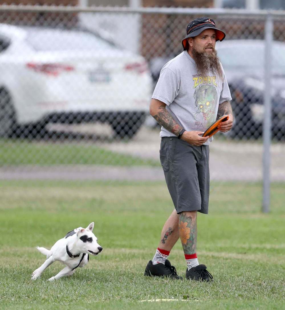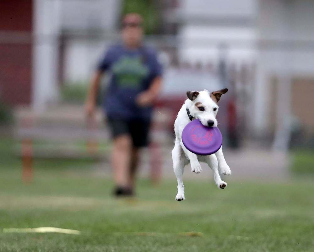 “Any dog can play this game,” MacTavish said, although larger dogs that can quickly cover long distances have a clear advantage. (That didn’t stop Sunday’s smallest competitor — Queso, a 16-pound Jack Russell Terrier — from taking the field with teammate Donna MacTavish, Shawn’s wife.)