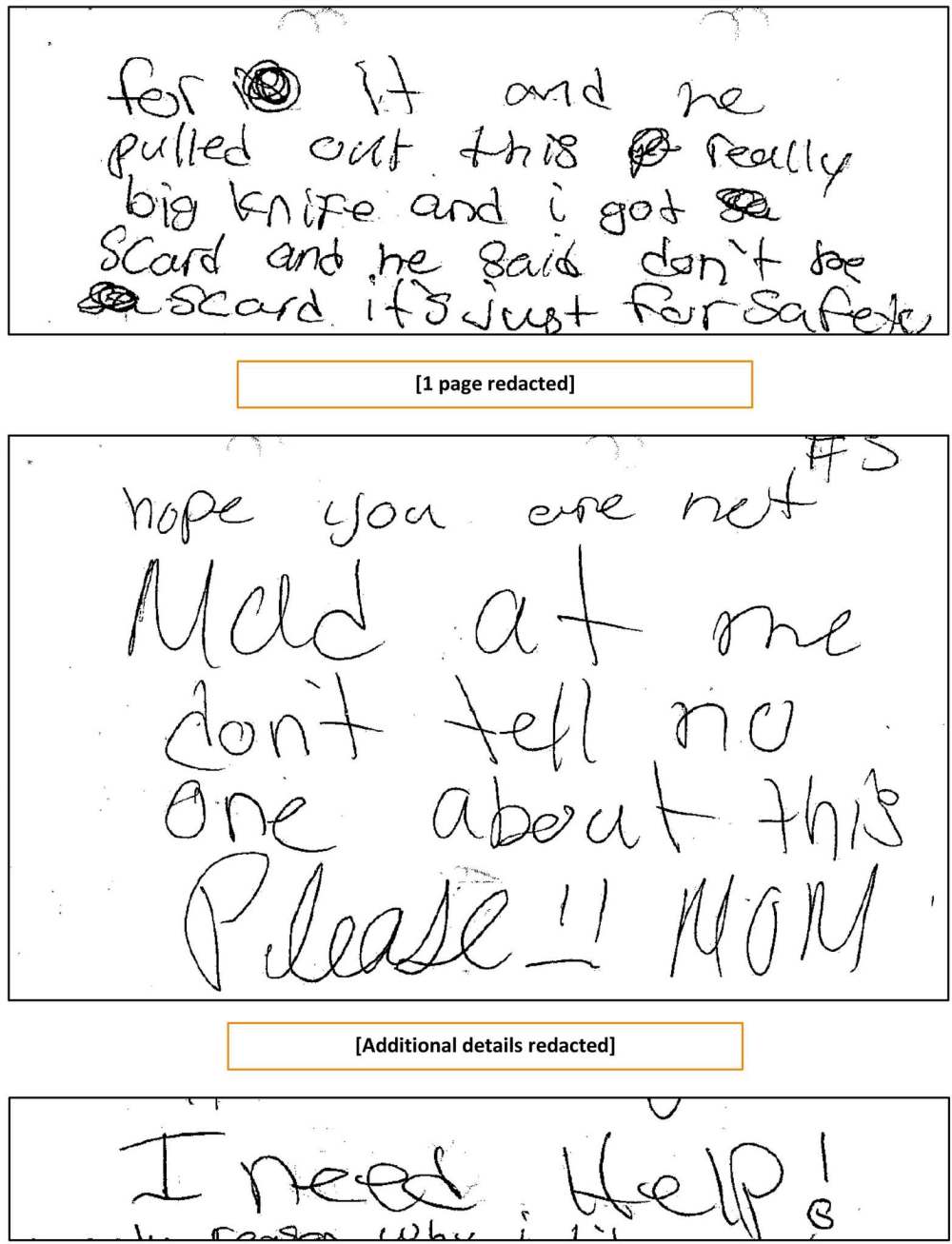 Angel’s account, laid out in 118 pages, includes instances of sexual abuse dating back to when she was 21 months old, sexual exploitation from as early as age 11, suicide attempts, solvent and drug use to “numb” her pain and 46 apprehensions into CFS care.