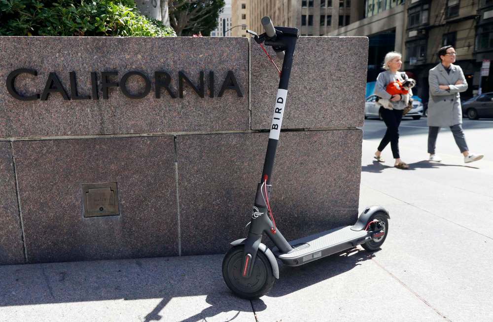 A person rides a Bird Rides electric scooter on the Embarcadero in San Francisco. (David Paul Morris / Bloomberg files)