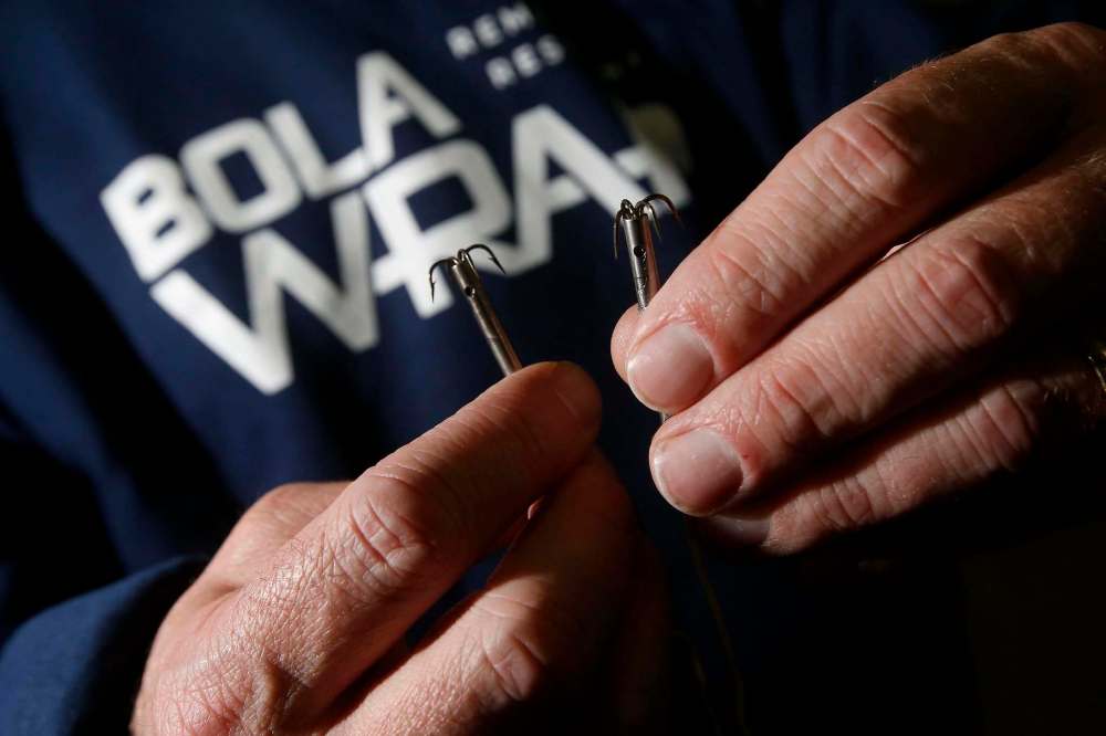 “It likes clothing. It’s wrapping around you. It’s throwing an eight-foot Kevlar tether with grappling hooks on the end that are No. 10 fishhooks. Those are going to grab onto that clothing, so the more you try to struggle to get away from it, the more it’ll grab on,” Smith said.