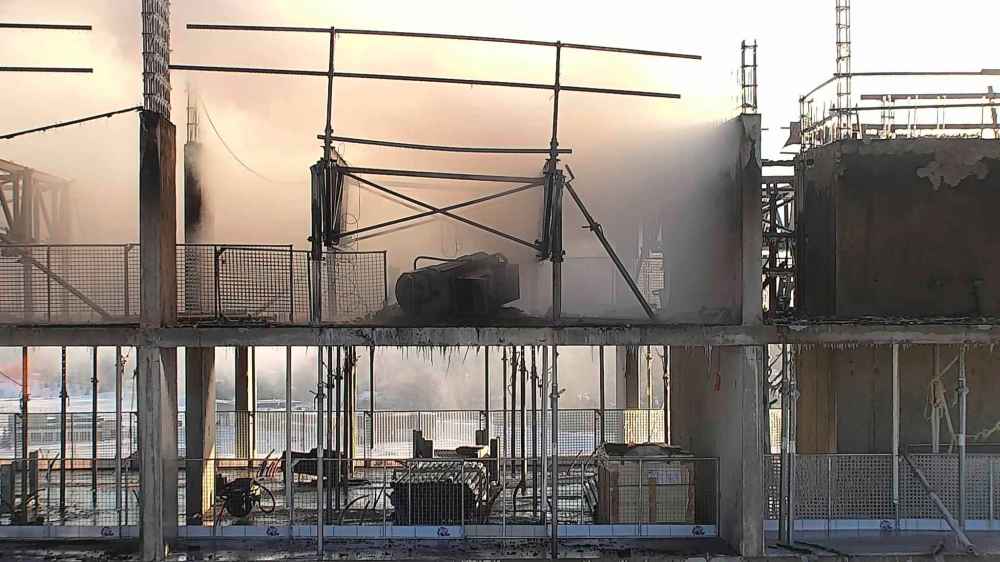 Crews couldn’t get water to the top of the building to extinguish the blaze because the on-site water supply hasn’t been fully installed, and they decided it was unsafe to try to fight the fire from inside, Holowczynsky said. The fire department used aerial ladders and a drone to battle the blaze.