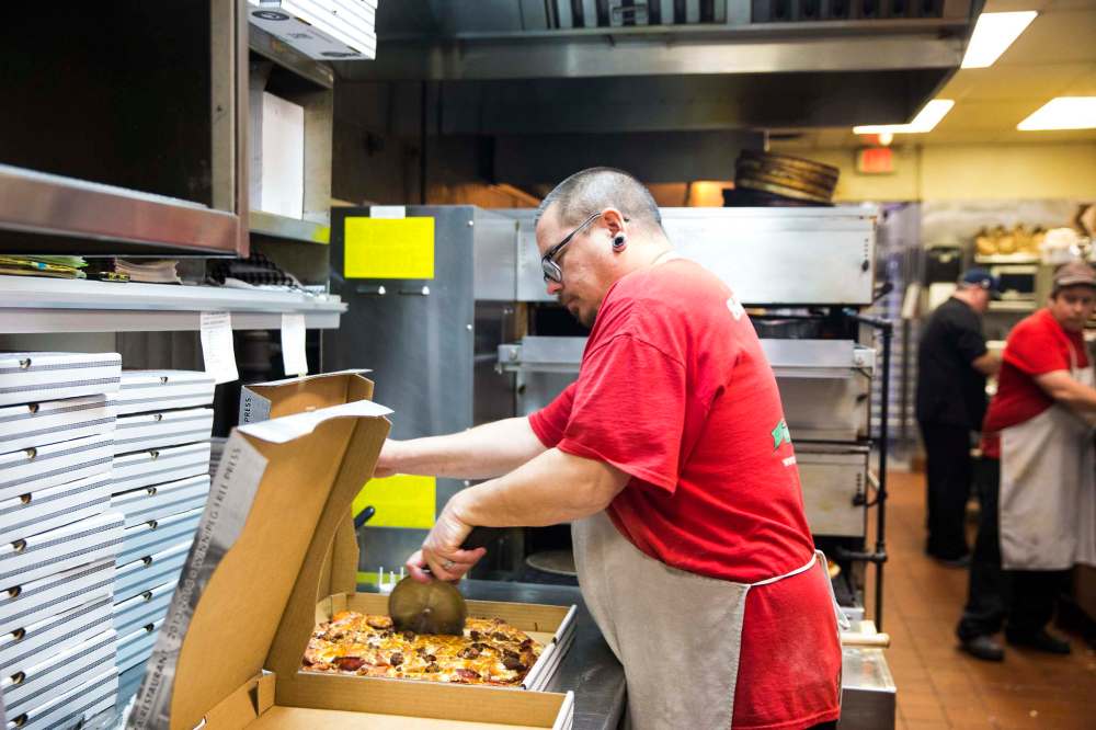“The other thing was most of the homes in the older parts of Winnipeg have front doors that are only 28 inches wide,” he says. “So it was a bit of struggle, at times, to get the pizza into a customer’s house without tipping the box from side to side. I remember when we first put a 30-inch pizza on the menu, if people said they were picking it up, we asked them what kind of car they drove. If it was a van or hatchback, they were OK, but if it was a smaller model, we let them know they were probably going to have to take their pizza home in the trunk.”