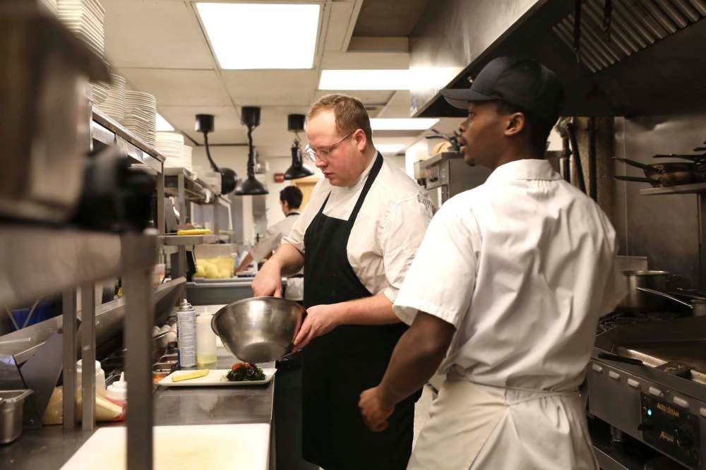 “We don’t want to scare anyone away but we don’t want to have something that they’re going to make at home on a Tuesday night either,” he said, using an Arctic char dish with a braised lentil and sweet potato hash, and soubise (an oniony cream sauce) as an example.