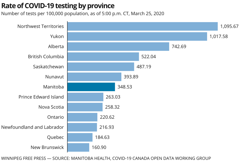 Manitoba has limited testing to the most at-risk groups; it has also been hamstrung by a backlog at the Cadham Provincial Laboratory.