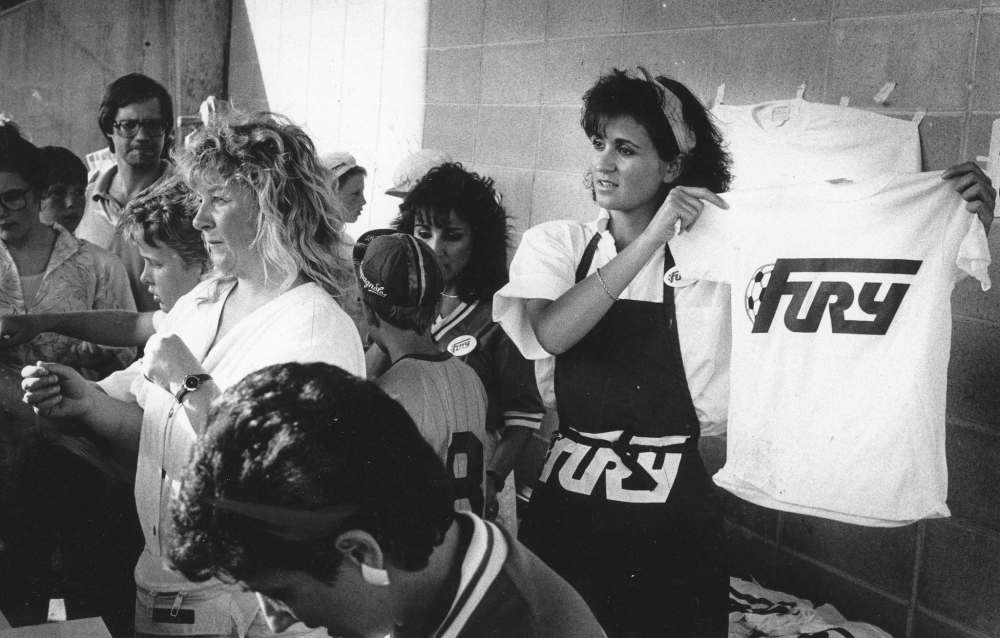 Fury merchandise for sale at the Canadian Soccer League team’s 1988 season opener.