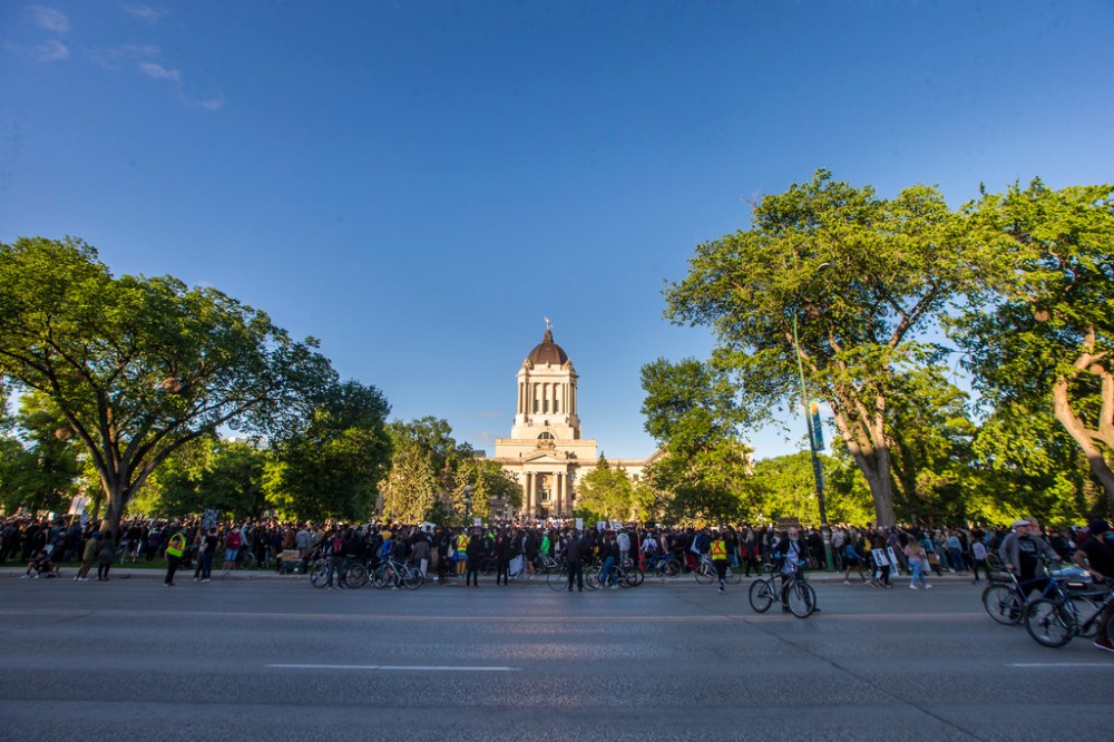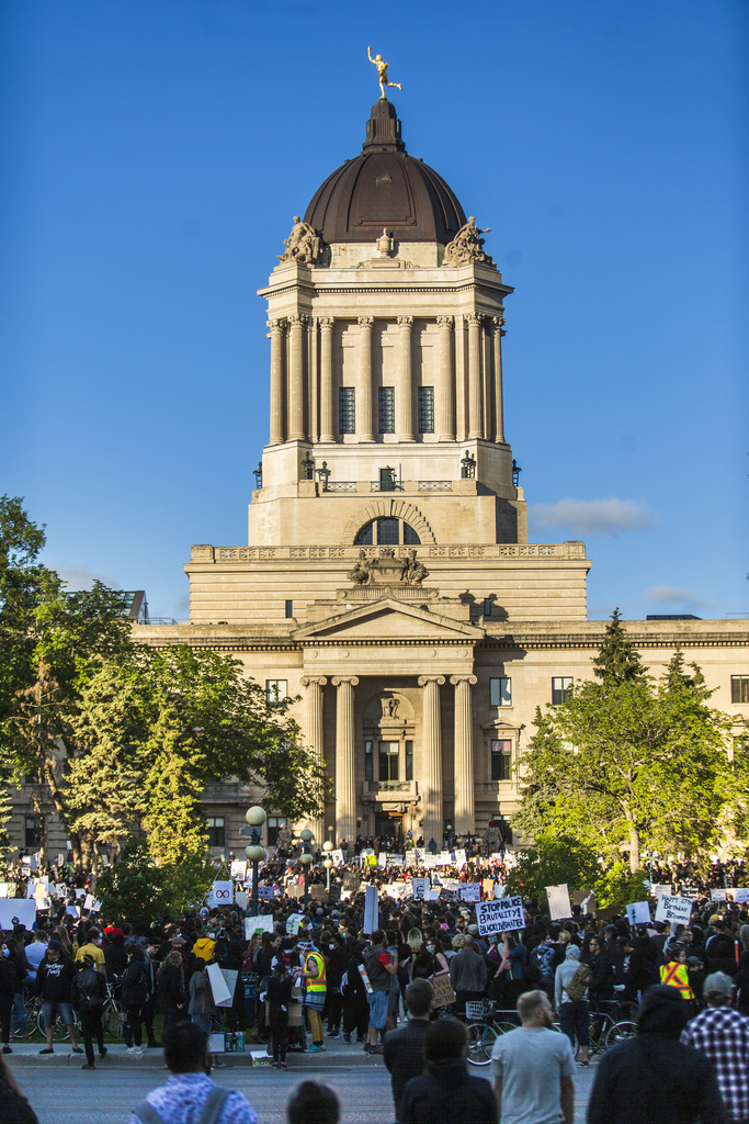 On the grounds of the legislature, there was no visible police presence among the crowd, which reflected Winnipeg’s diversity: whites, blacks, Indigenous people, Indo- and Asian-Canadians.