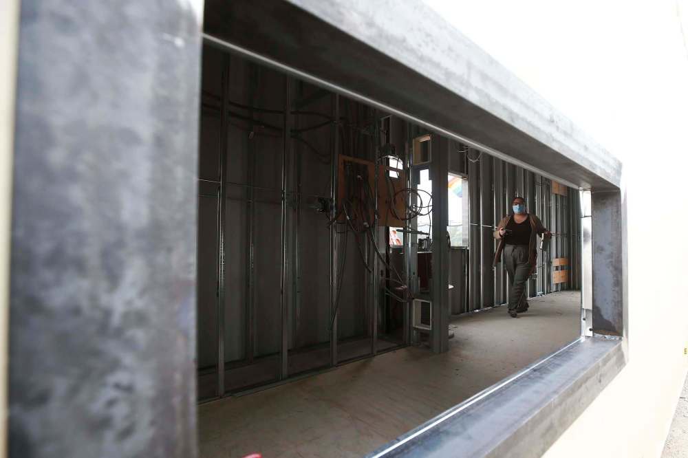The 40-foot “visitation pods” are insulated, heated and air-conditioned. They incorporate a germicidal UVC lighting system, said Monique Buckberger, Winnipeg district manager of PCL.