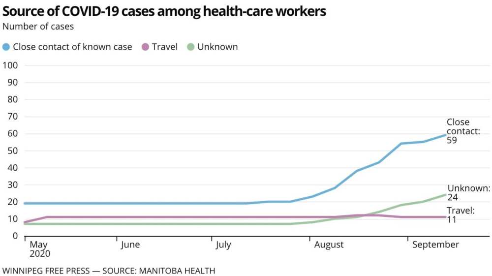 After 11 weeks in the summer with just one case reported in a health care worker, 59 staff members were diagnosed with COVID-19, from Aug. 2 to Sept. 19.