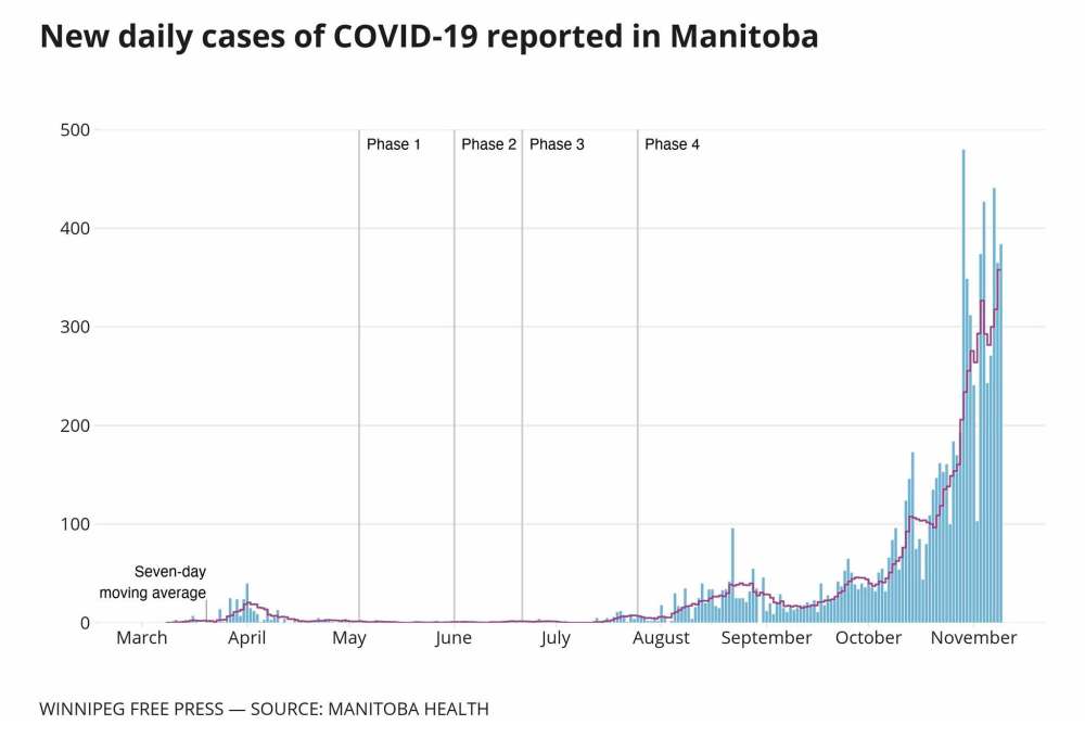 Manitoba goes full code red Province-wide lockdown follows 384 new COVID-19 cases, five more deaths